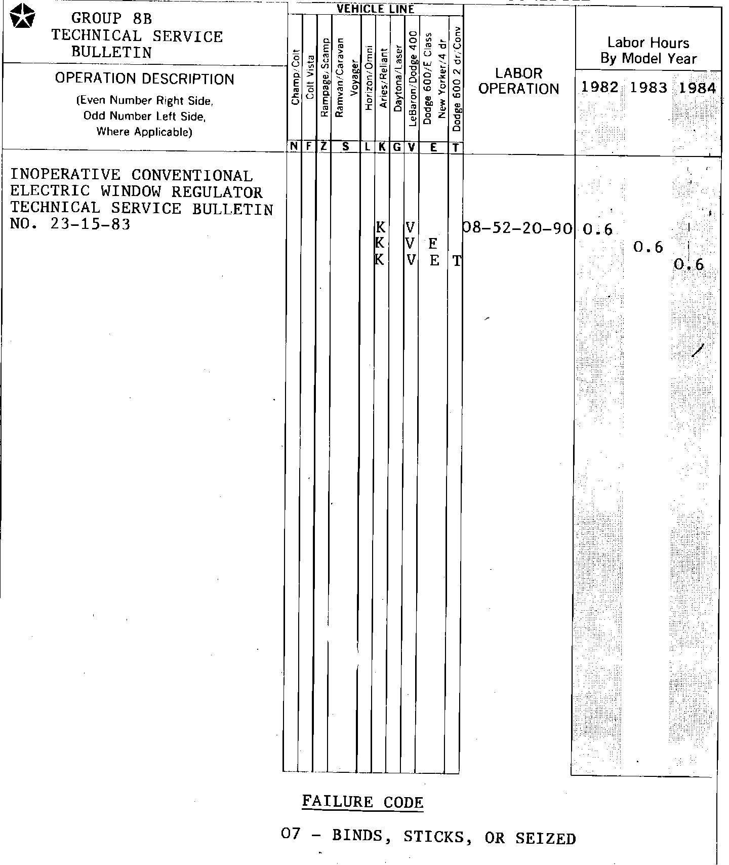 FAILURE CODE: 07 - Binds, Sticks or Seized