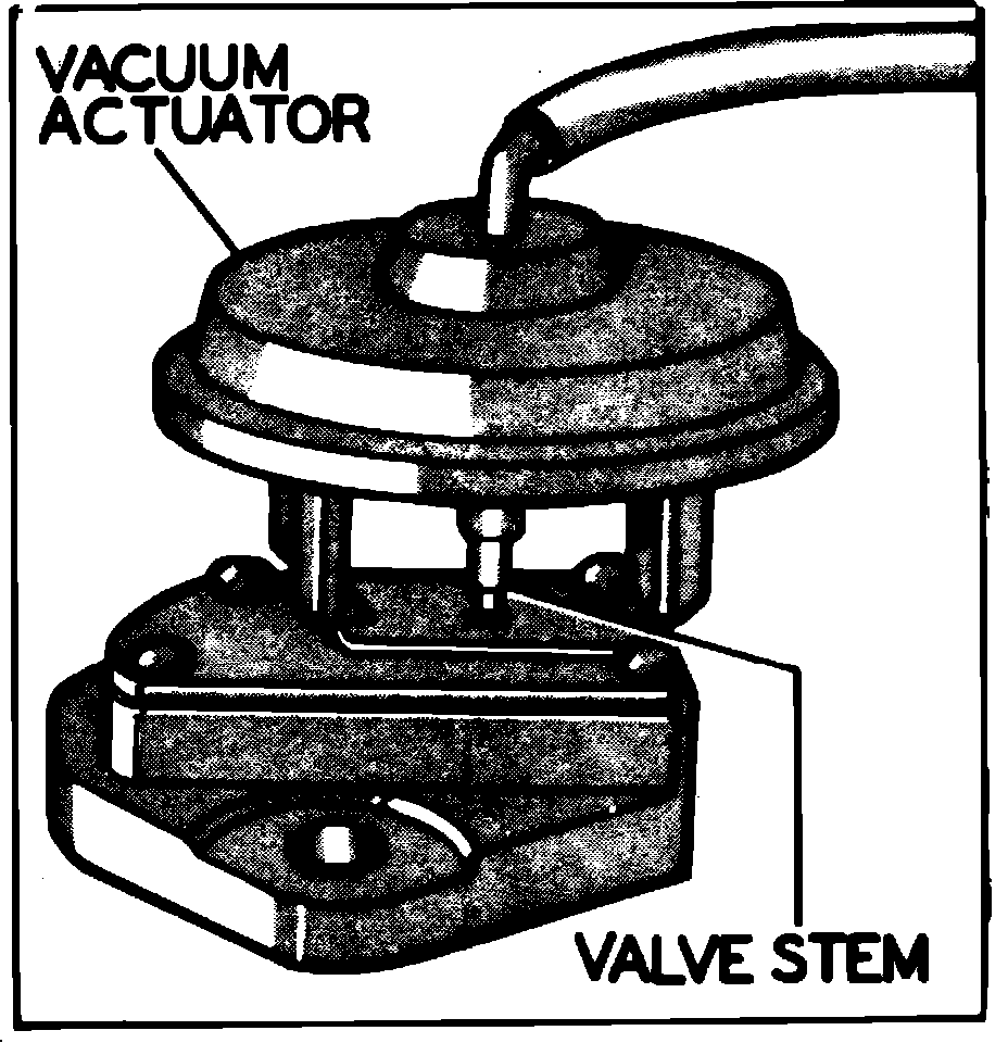 The EGR control valve should be checked for deposits with particular attention to the poppet and seat area, Fig. 24. If deposits exceed a thin film condition, the EGR valve should be cleaned. If wear of the stem or other moving components is noted, the EGR valve should be replaced. Extreme care should be exercised during the cleaning operation to prevent spilling of solvent on the valve diaphragm, as this will cause diaphragm failure. Do not push on diaphragm to operate valve, use the vacuum source only.