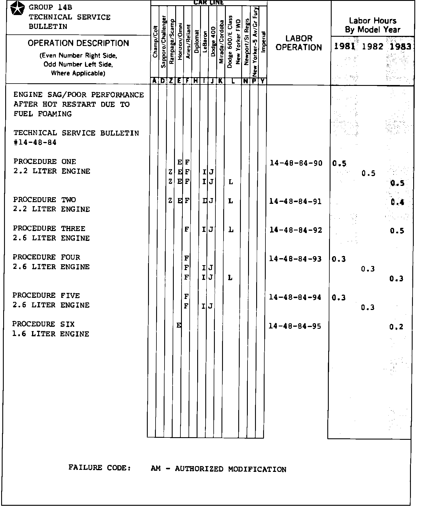 Labor Operation No. 14-48-84-95 . . . . . . .0.2 Hrs.