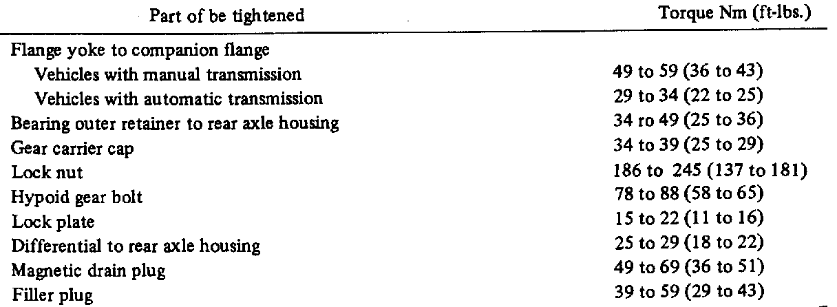 Differential Torque Specifications
