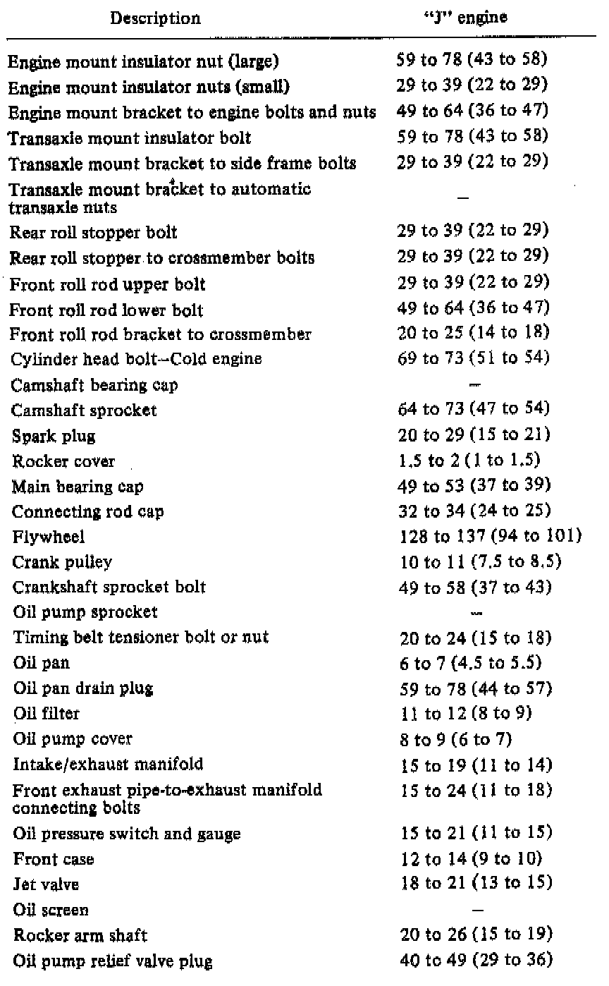 Torque Specifications: