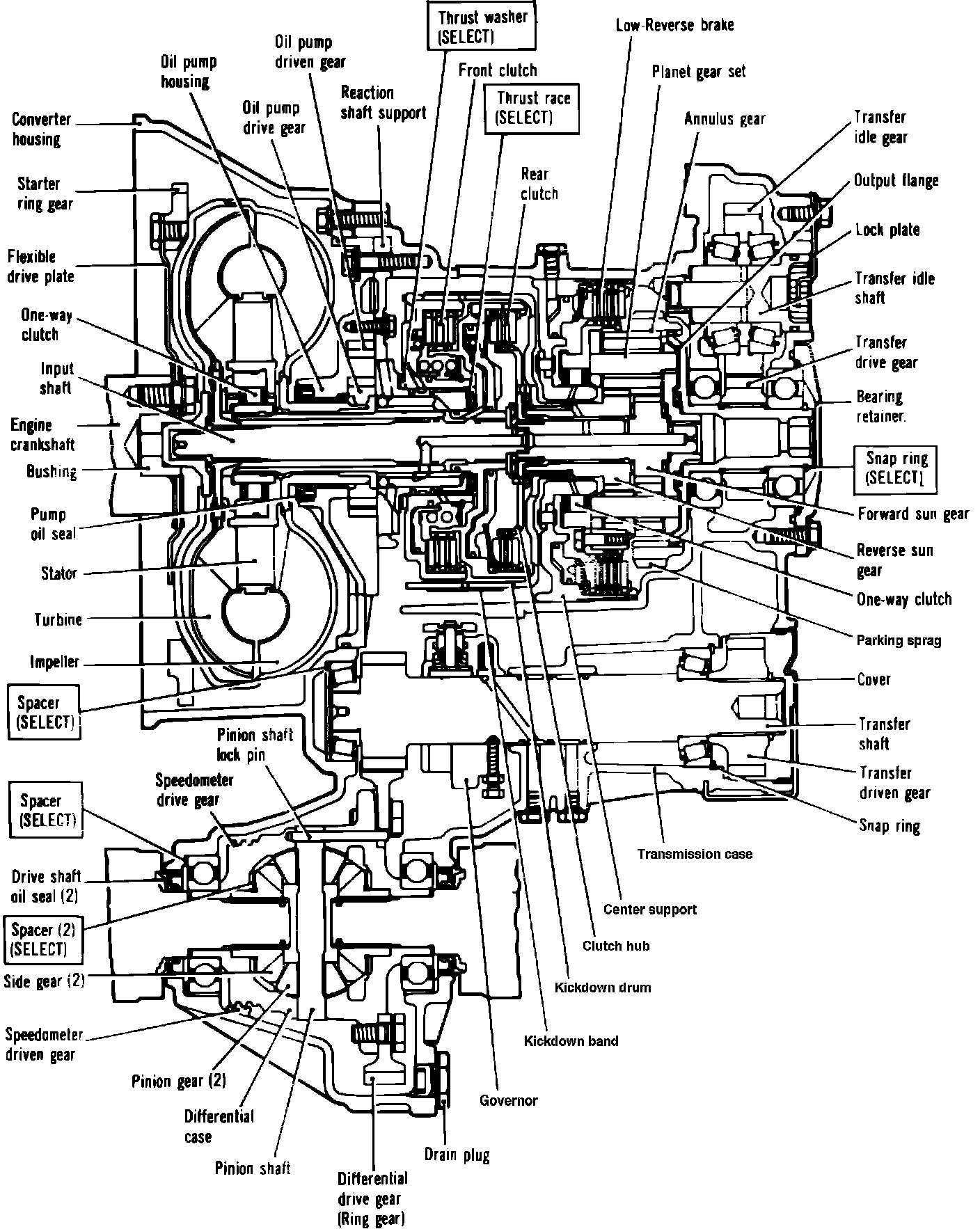 Fig. 18 Sectional view of Mitsubishi KM170 automatic transaxle. 1984 Colt Hatchback: