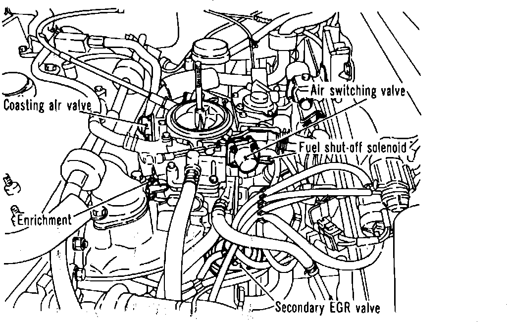 Emission Control System & engine compartment reference diagrams. 1982 Colt & 1982-83 Colt: