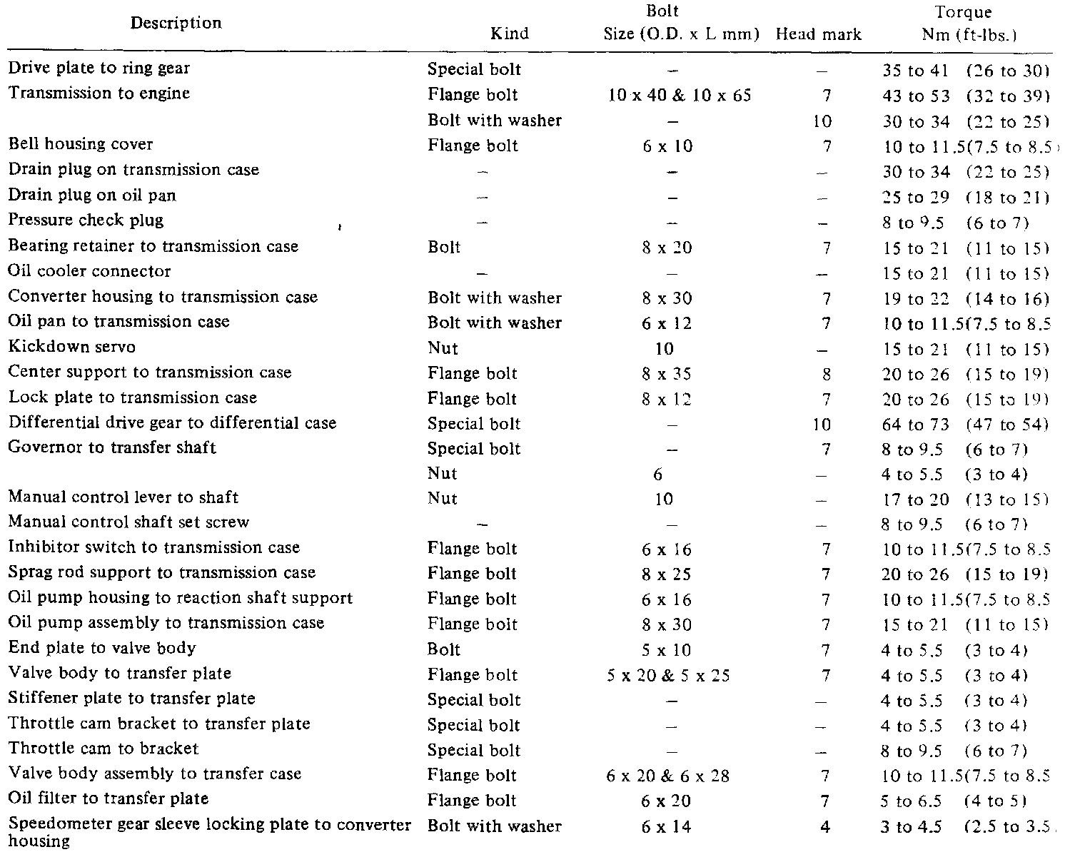 Torque Specifications