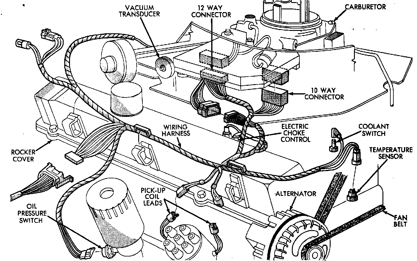 Electronic Feedback Carb. System Component location 6 cyl.: