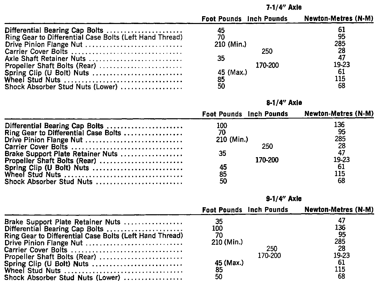 REAR AXLE ASSEMBLY 7-1/4 IN, 8-1/4 IN, AND 9-1/4 IN,