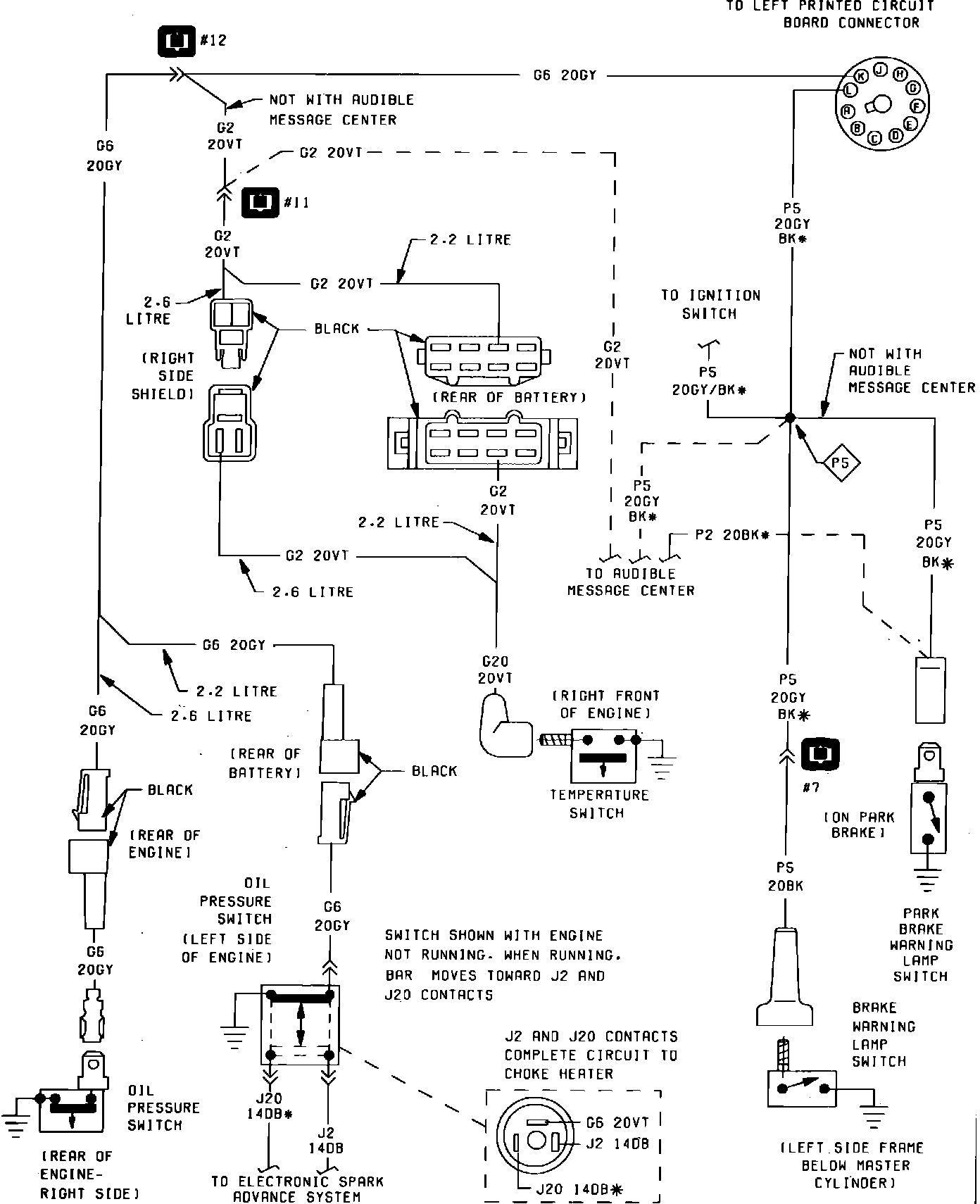 Fig. 25 Brake, Oil Pressure & Temperature Switch Wiring Circuit. 1983: