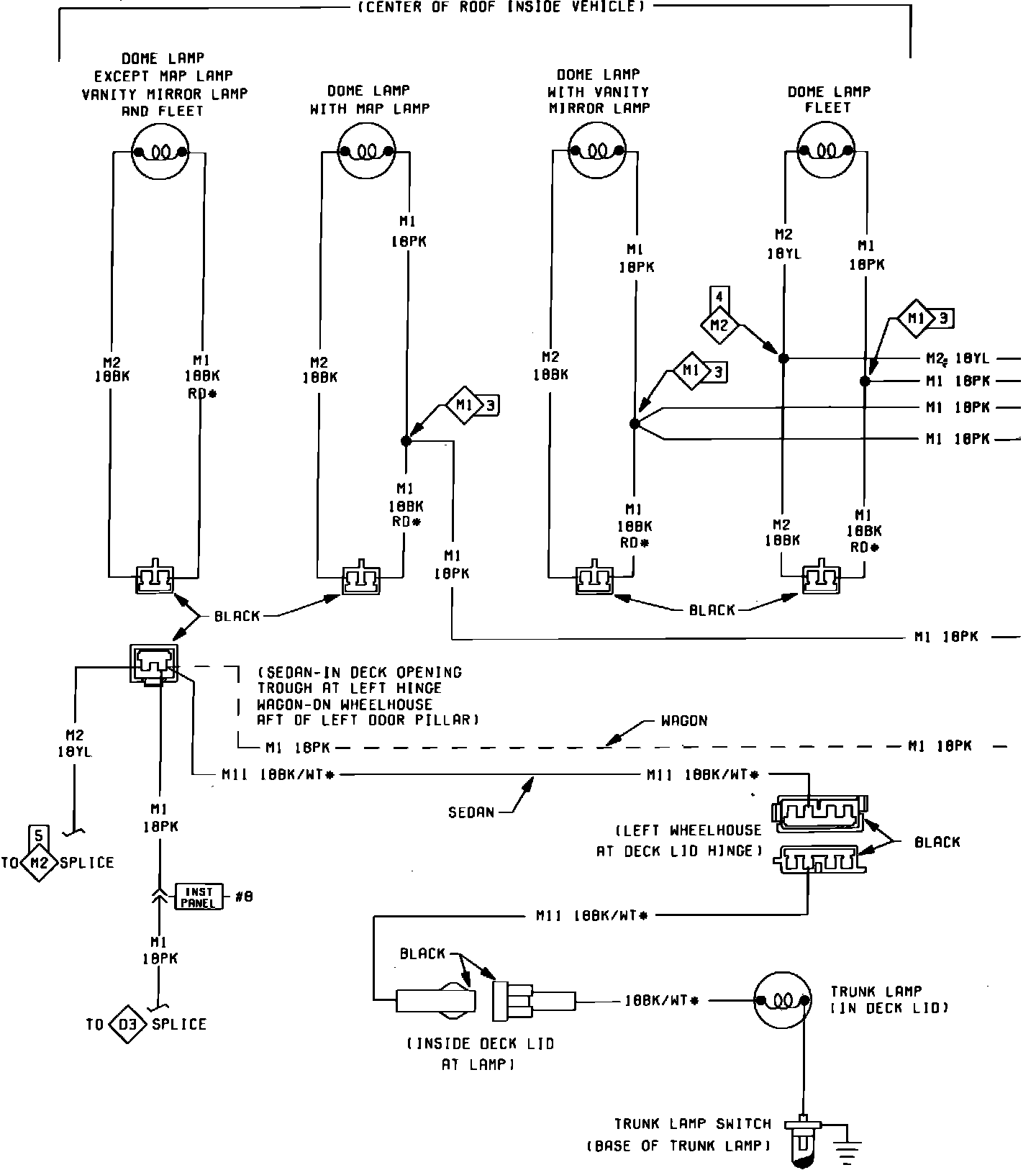 Fig. 25 Cargo, Dome, Map & Vanity Lamp Wiring Circuits (Part 1 of 2). 1983-84: