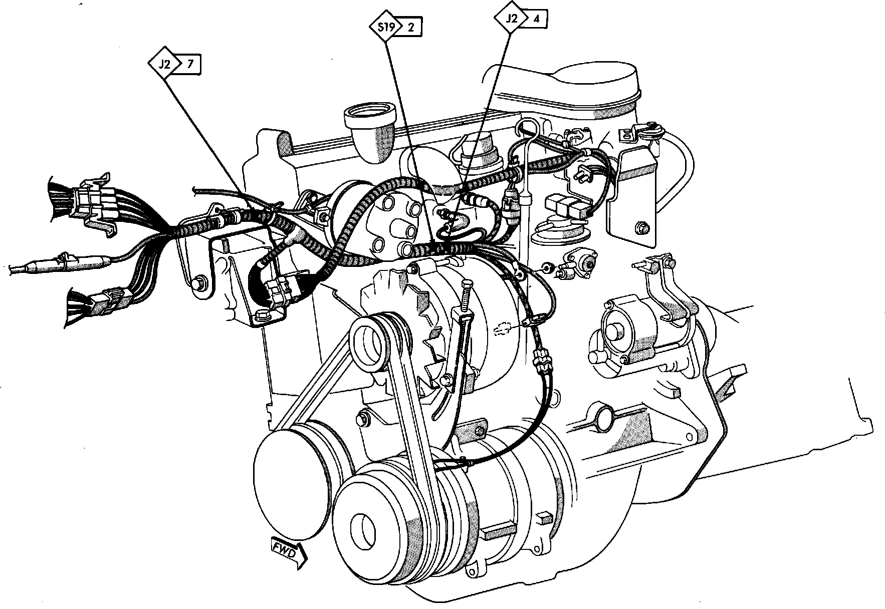Fig. 94 Splice Locations (Engine). 1983-84 W/2.6 Liter Engine:
