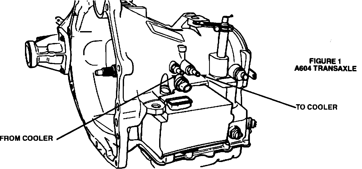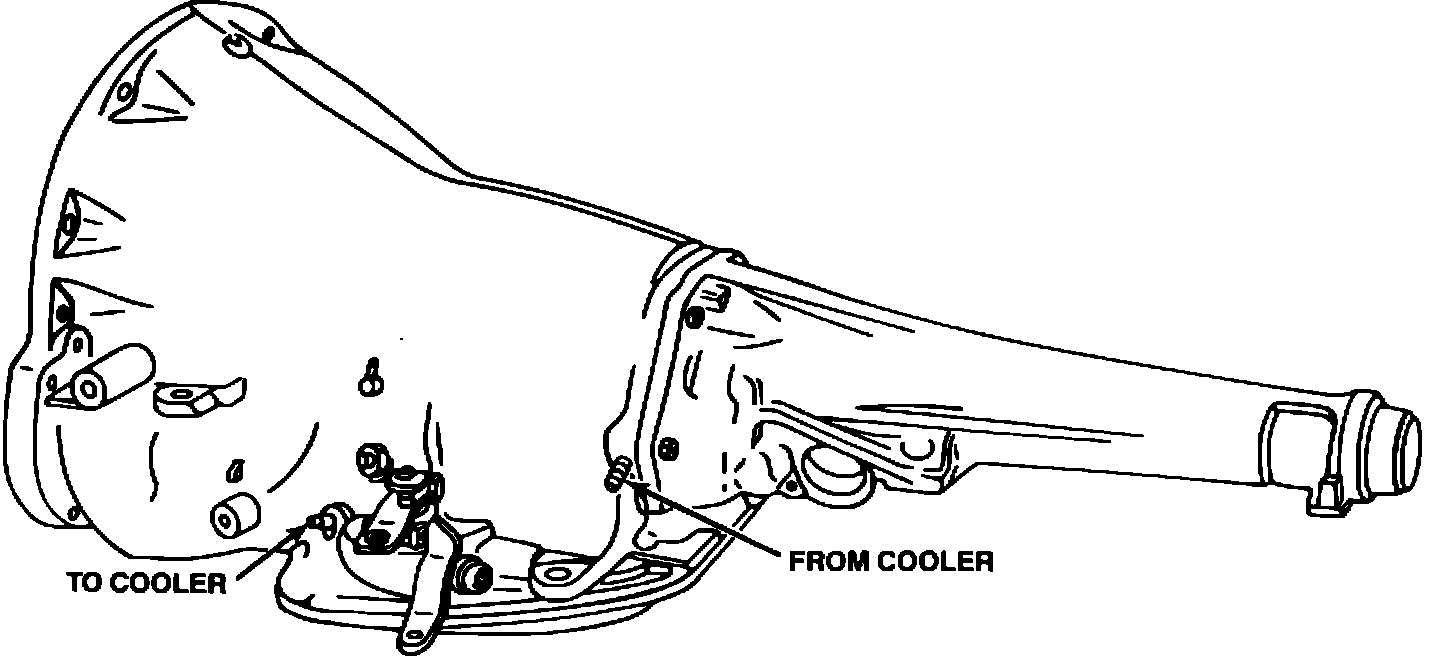 Although several styles of transmission coolers are in use, including various oil-to-air designs and those internal to the radiator tank, all have small internal passages which can trap debris, such as loose lock-up clutch friction material and become clogged. It is absolutely necessary, in any case of transmission failure, to thoroughly flush the cooler, following the procedure outlined below and then check the flow to ensure that all possible debris has been removed.