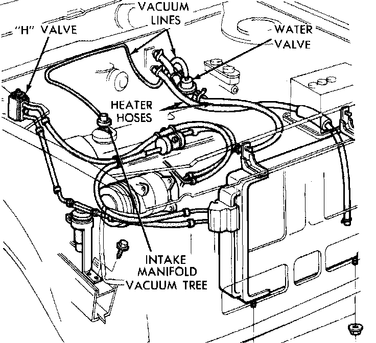 3. Disconnect vacuum lines at engine intake manifold and water valve.