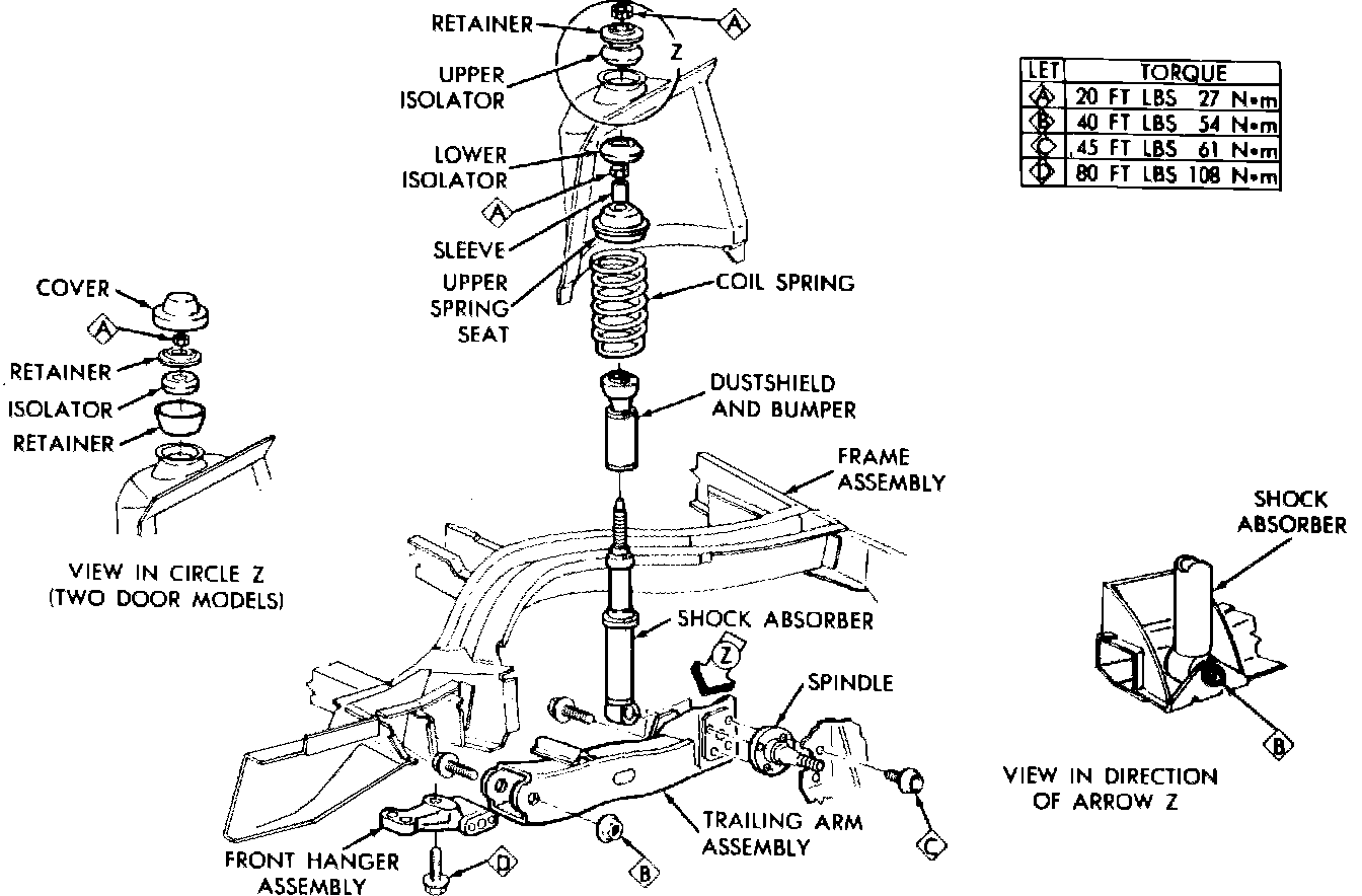 Fig. 5 Rear axle & suspension assembly. Horizon, Omni, Charger & Turismo:
