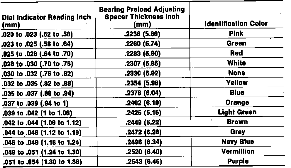 2. Select the proper front wheel bearing preload spacer as follows: