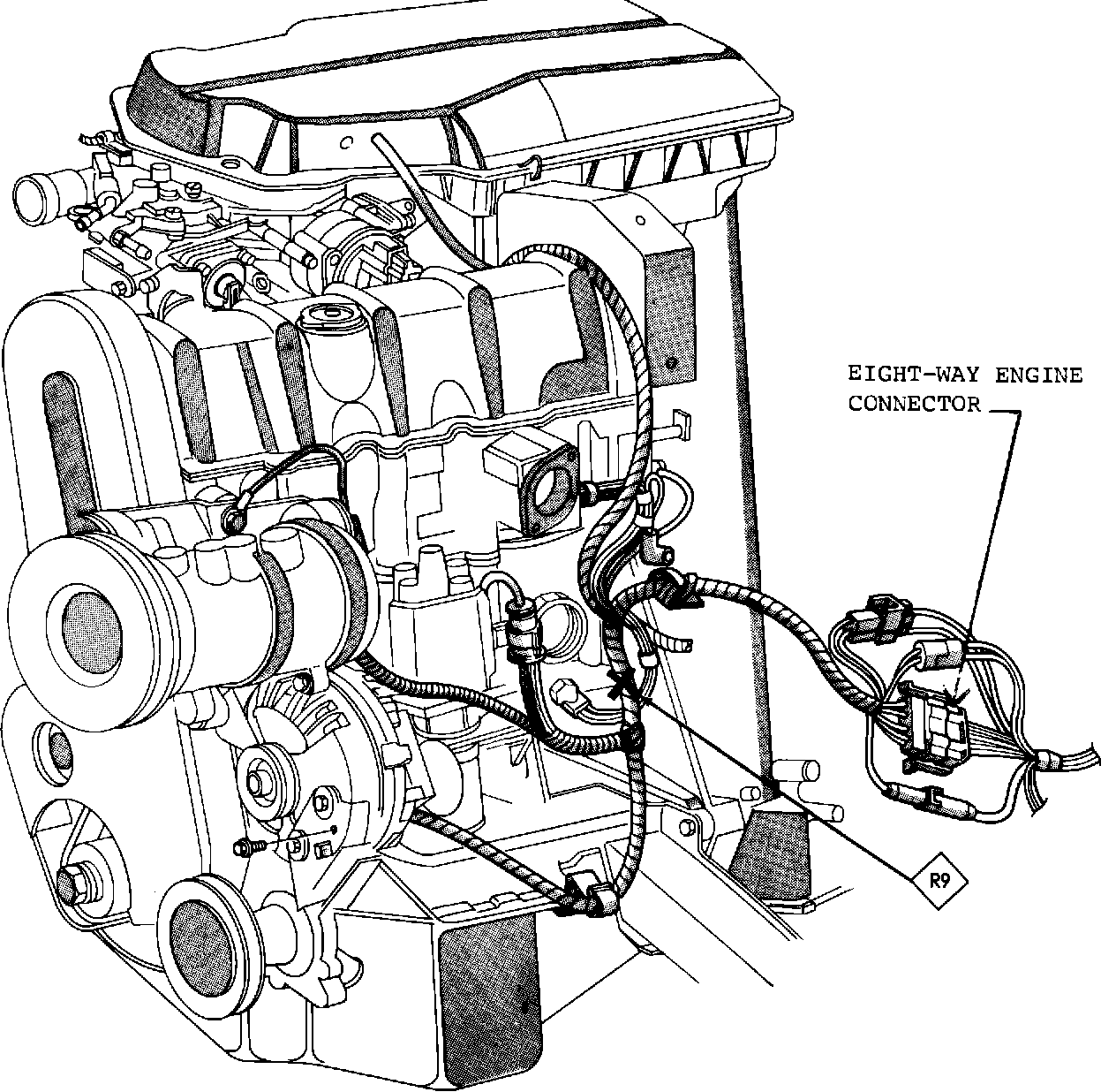 8. Reconnect engine eight-way connector.
