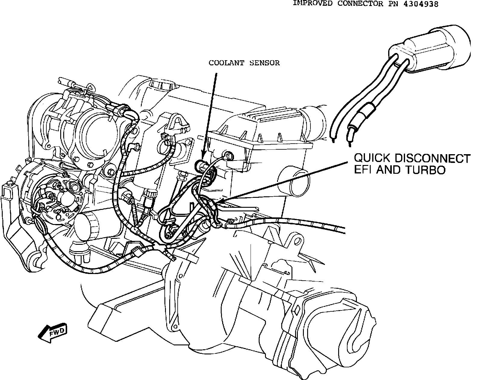 NOTE: THE REPAIR CONNECTOR HAS AN IN-LINE QUICK DISCONNECT FOR TURBO AND EFI MODELS. THIS DISCONNECT IS TO BE USED WHEN SETTING IGNITION TIMING ON THESE MODELS AND ALSO WHEN SETTING IDLE SPEED ON TURBO MODELS. THE DISCONNECT IS NOT NECESSARY ON CARBURETED ENGINES AND MAY BE CUT OFF OF SERVICE PART IF DESIRED.