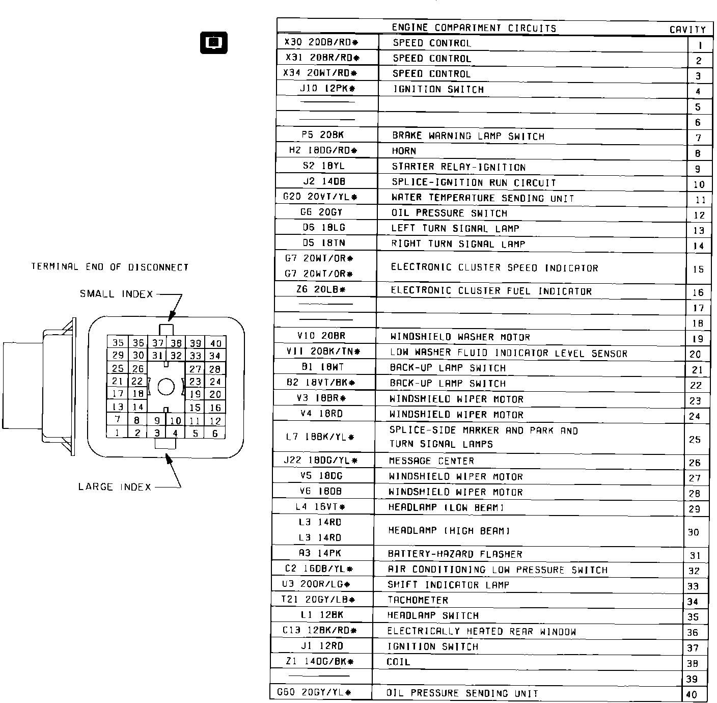 Fig. 5 Bulkhead Connector (40 Way). 1985 Engine Side: