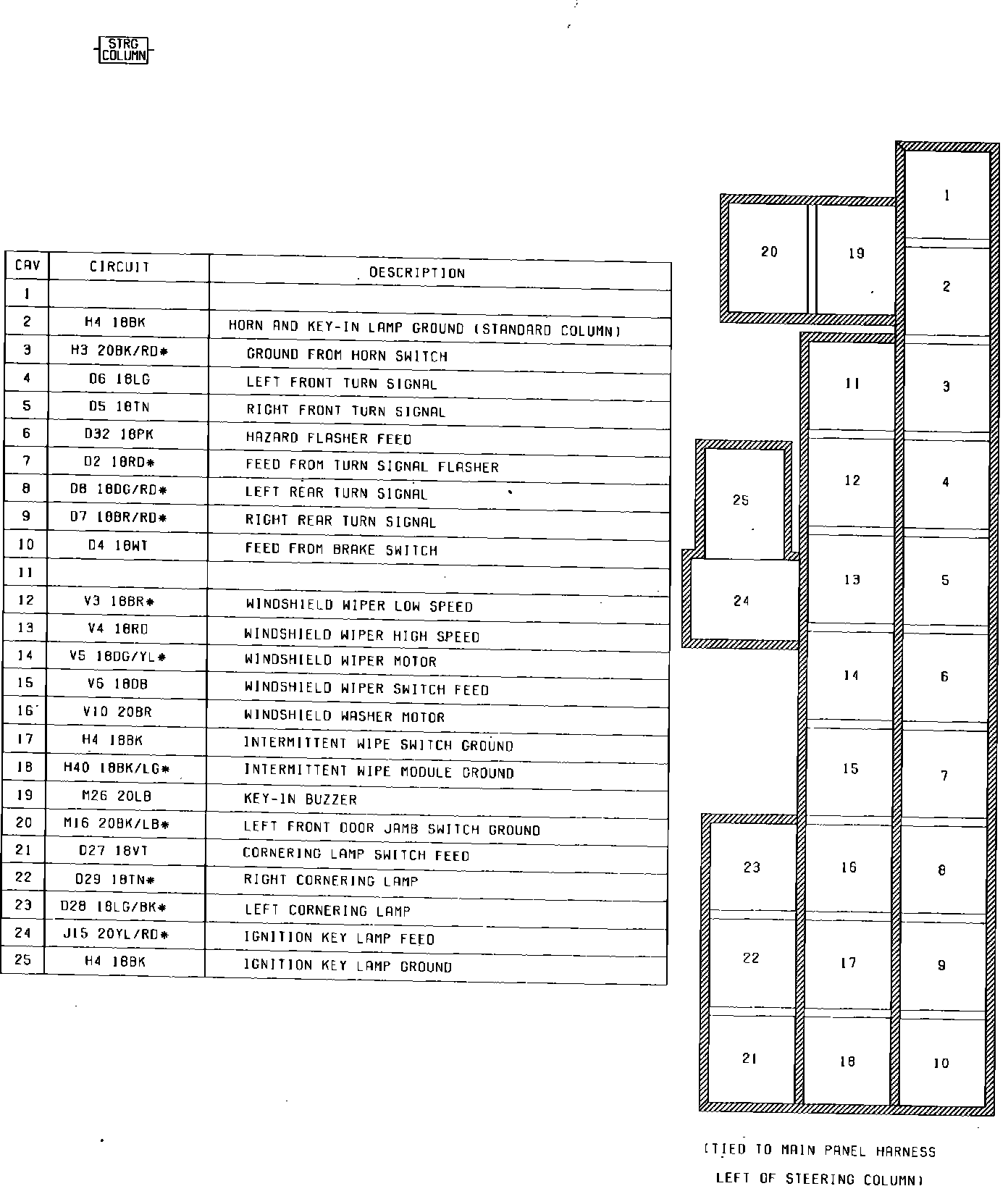 Fig. 10 Instrument Panel To Steering Column Connector (25 Way, Part 1 of 2). 1985: