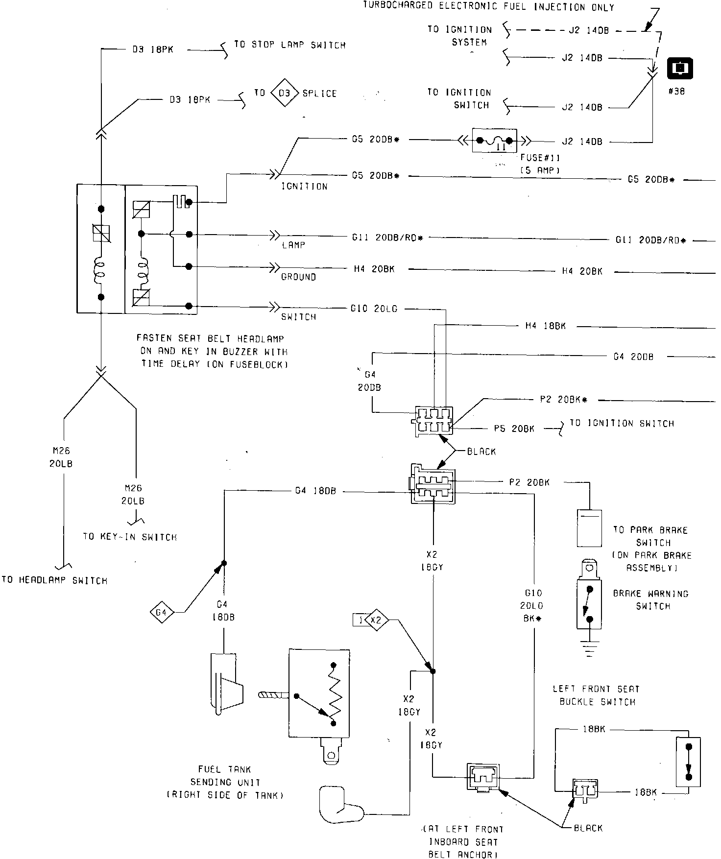 Fig. 11 Brake, Fuel Gauge, Seatbelt & Tachometer Wiring Circuit -- Part 2 1985: