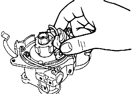 10. Connect vacuum control link to breaker plate, then insert and tighten vacuum controller attaching screws.