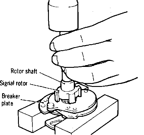 4. Remove signal rotor shaft and breaker plate attaching screws, then the signal rotor shaft and breaker plate, Fig. 12.