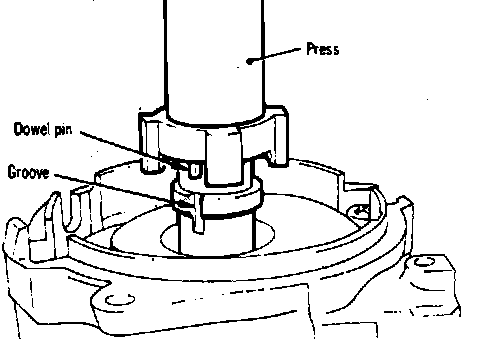 6. Install signal rotor onto signal rotor shaft using a suitable press, ensuring dowel pin can be inserted into groove, Fig. 17.