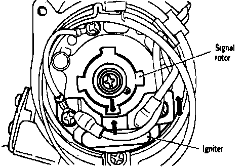 9. Adjust air gap between signal rotor and igniter pickup to 0.018-.021 inch on Colt or 0.31 inch on Colt Vista and Ram 50, Fig. 18.