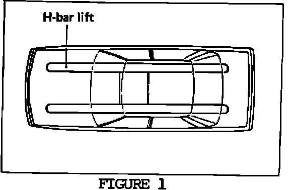 When a subject model vehicle is raised on a free wheel type (H-bar) lift (Figure 1), where the vehicle's frame rests on two metal rails, wooden block attachments must be used to ensure that suspension components are not damaged. Construction and use of such units is as follows: