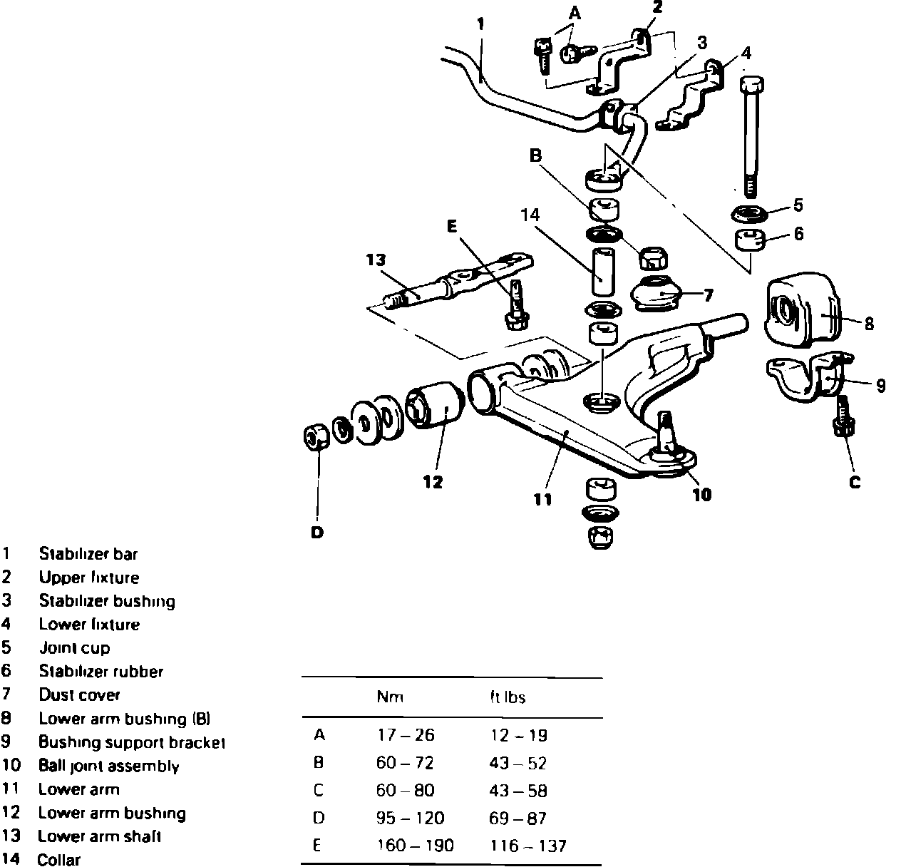 Fig. 2 Lower control arm assembly. 1985-87 Colt:
