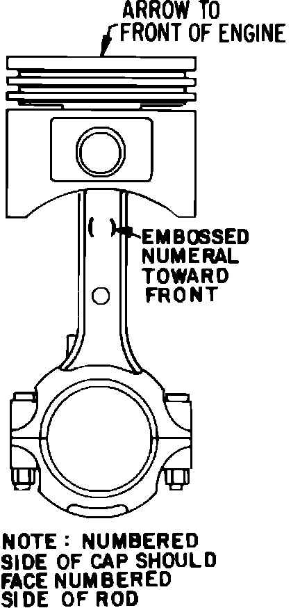 This piston and rod is assembled with the indented arrow on the piston and the embossed numeral on the rod facing toward front of engine, Fig. 50.