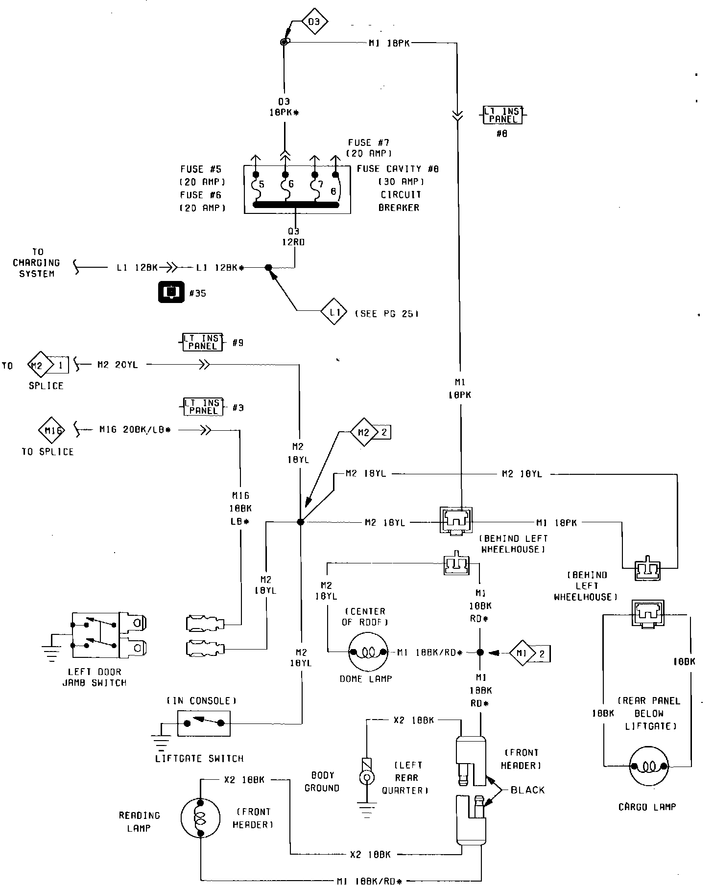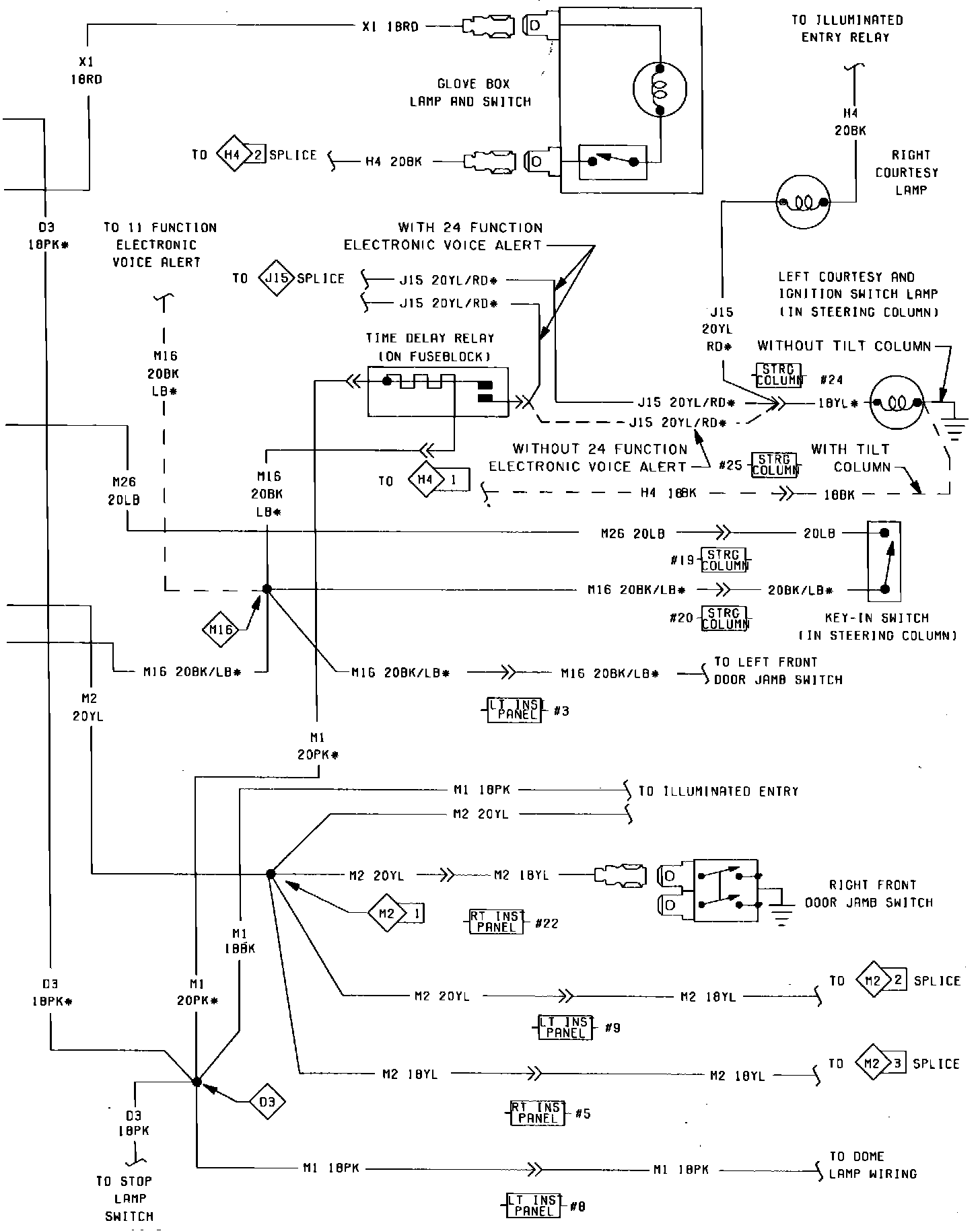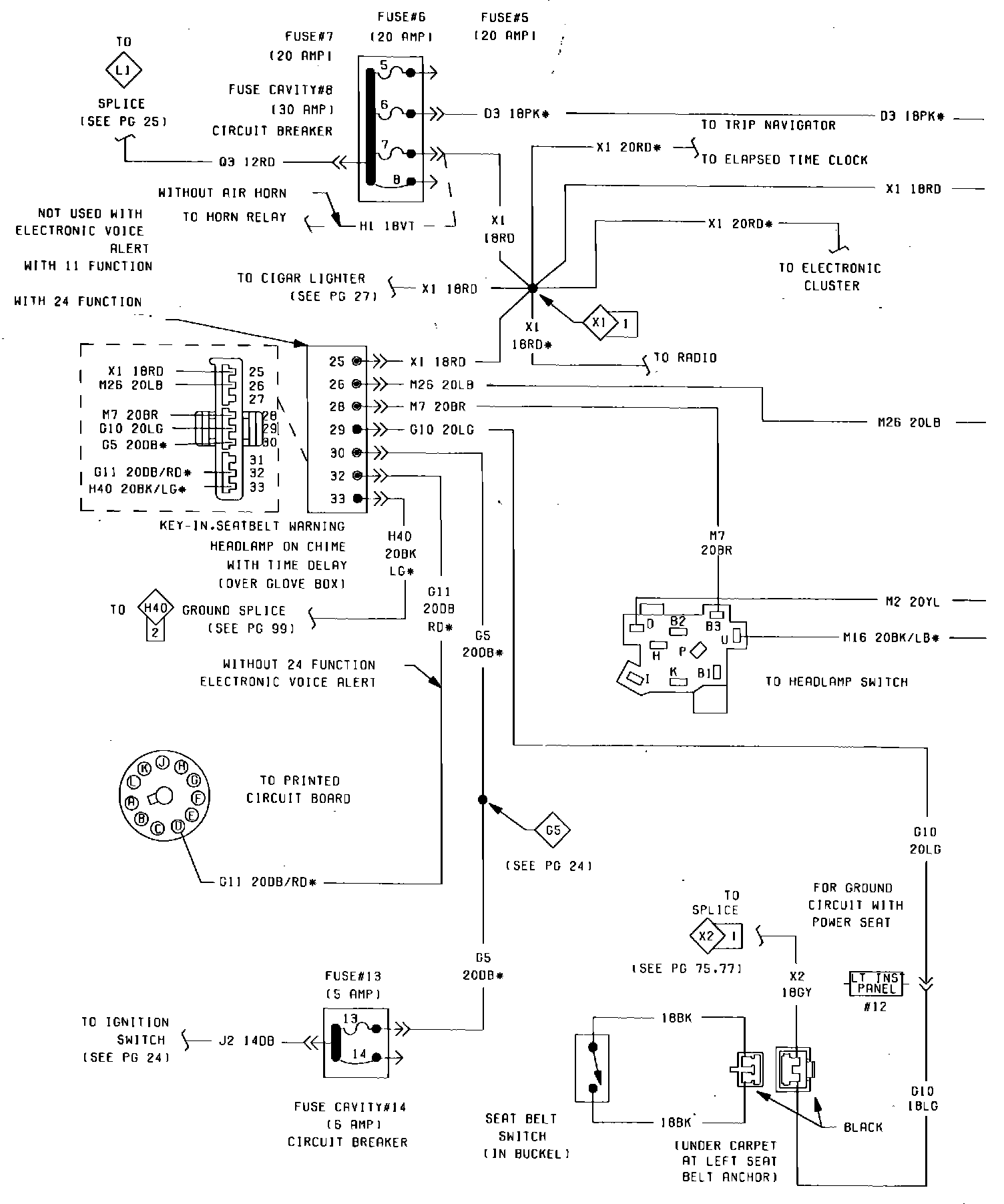 Fig. 16 Courtesy & Dome Lamps & Seatbelt Warning System Wiring Circuit (Less Voice Alert, Part 1 of 3). 1985: