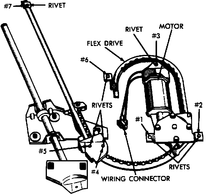 The power window motor is attached to the window regulator. The window regulator is a flex drive design. The window motor/regulator assembly is attached to the inner door panel of each door.