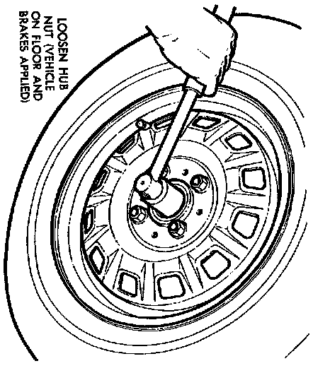 2. Loosen or remove axle hub nuts on both front wheels, as per illustration.