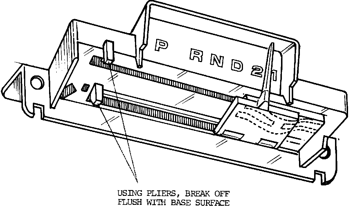 3. Remove the gear selector indicator from the instrument cluster. Break off the two pointer stops from the underside of the indicator base, as shown in Figure 1.