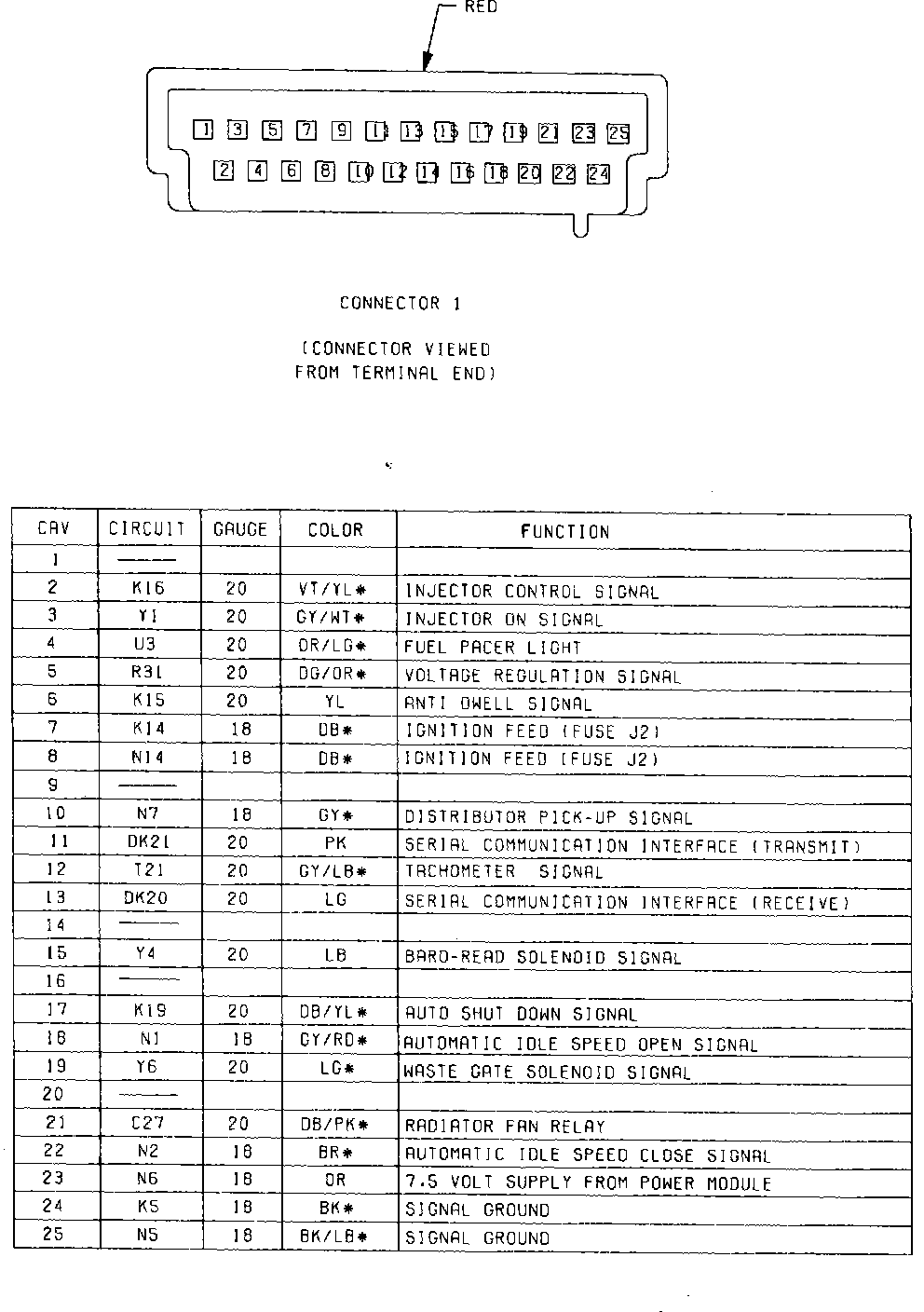 Fig. 6 Logic Module Connector 1985 W/Turbo Engine: