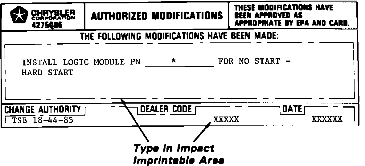 Type in Authorized Modification Label, PN 4275086, as shown in Figure 1.