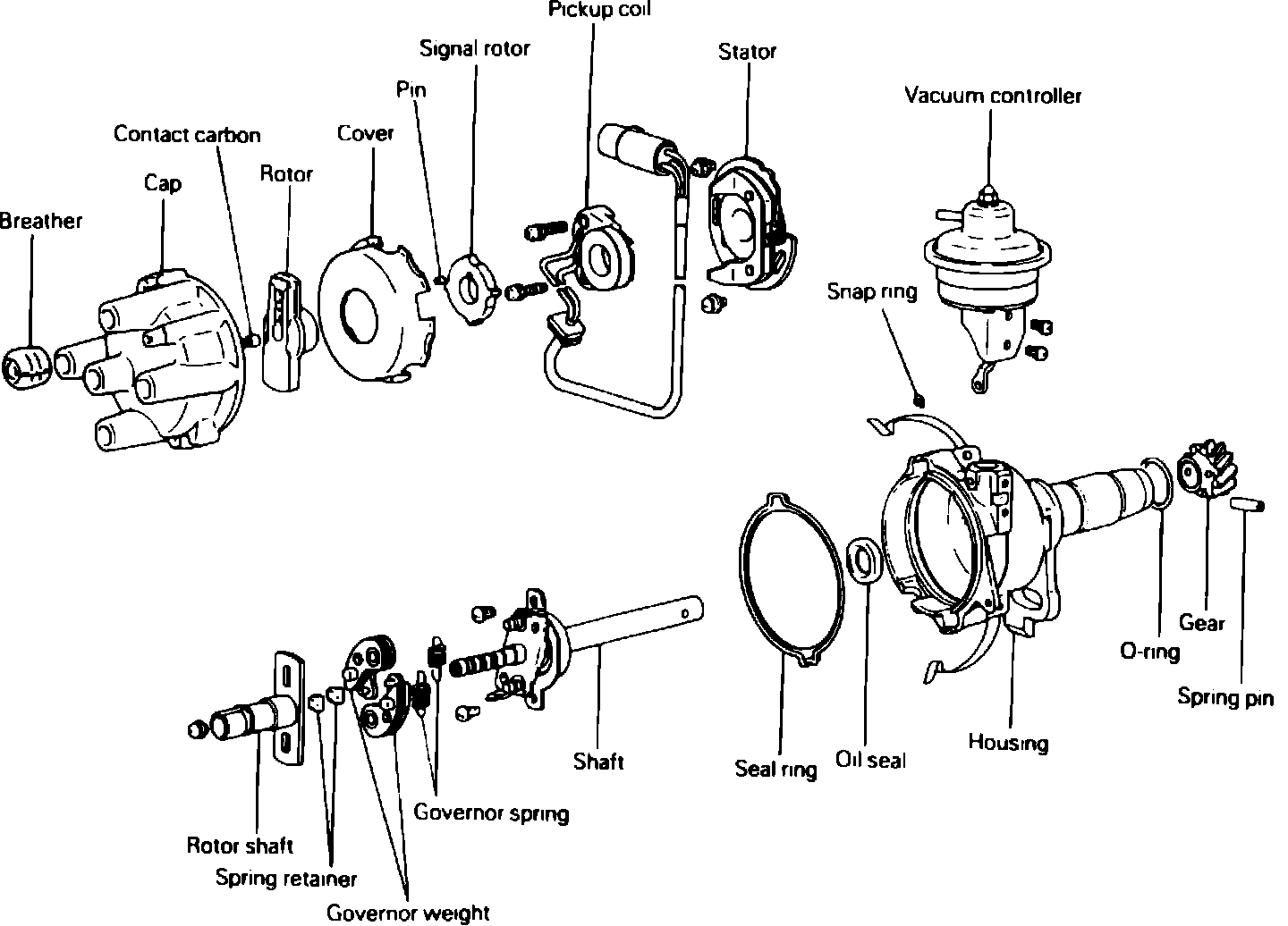 7. Connect vacuum controller link to breaker plate, then attach snap ring.