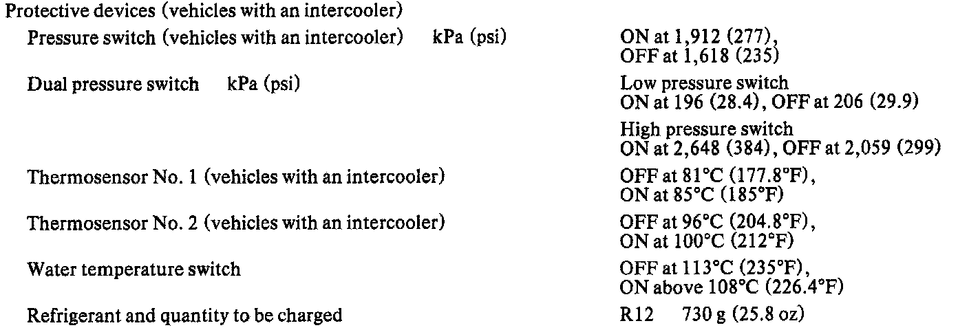 Refrigerant Pressure Sensor / Switch: Specifications