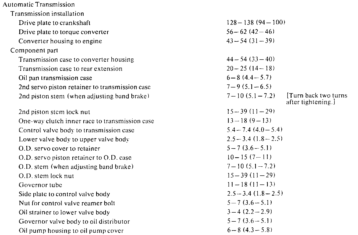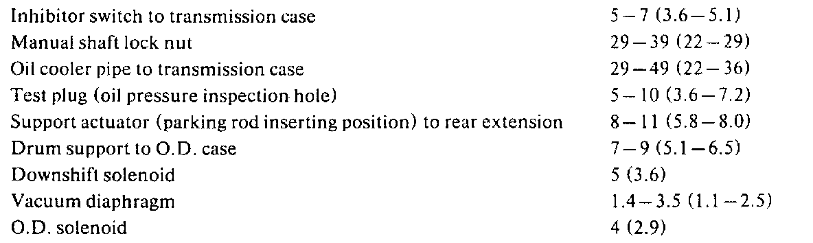 Torque Specifications: