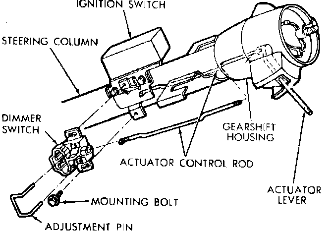 Dimmer switch replacement. Exc. Horizon, Omni, Charger & Turismo; models less tilt column: