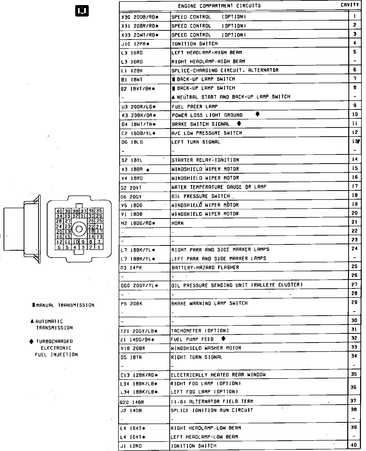 Fig. 4 Bulkhead Connector (40 Way). Engine Side: