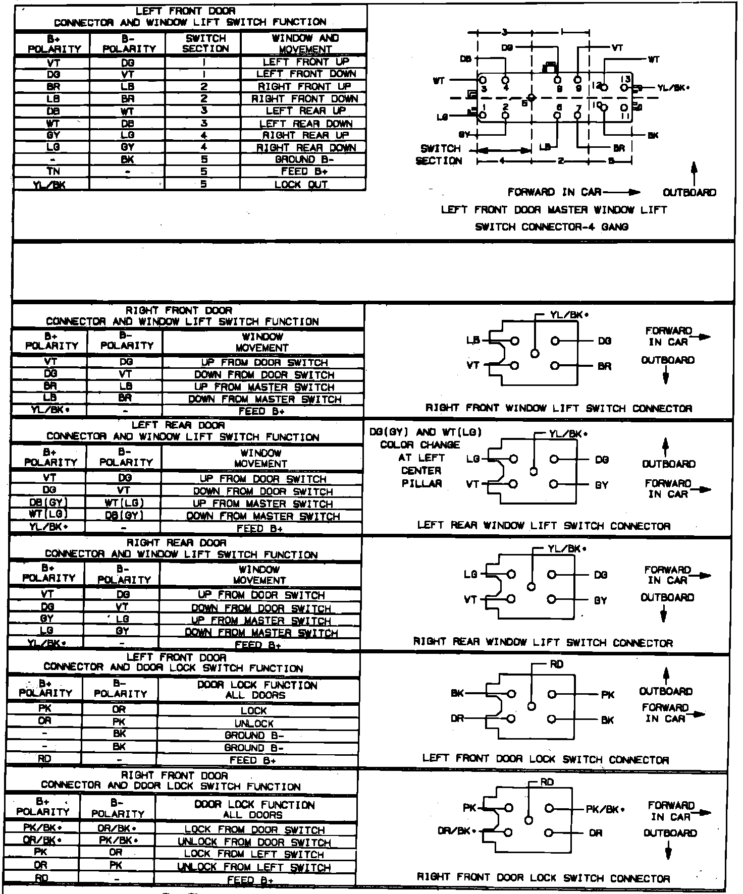 Fig. 13 Power Door Lock & Window Switch Connectors:
