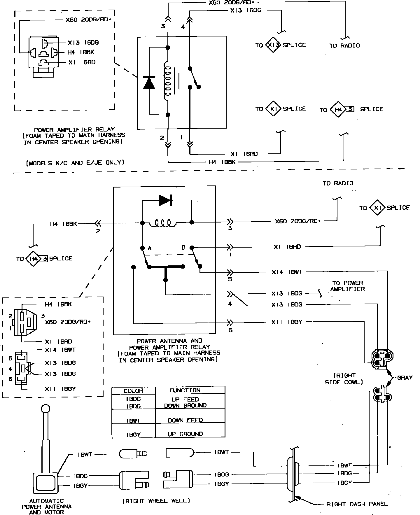 Fig. 50 Power Antenna & Radio Amplifier Wiring Circuit: