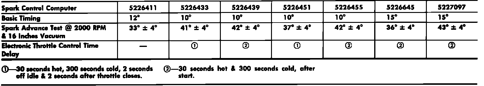 TIMING SPECS. 2.0L, 2.2L, 2.5L & 2.6L:
