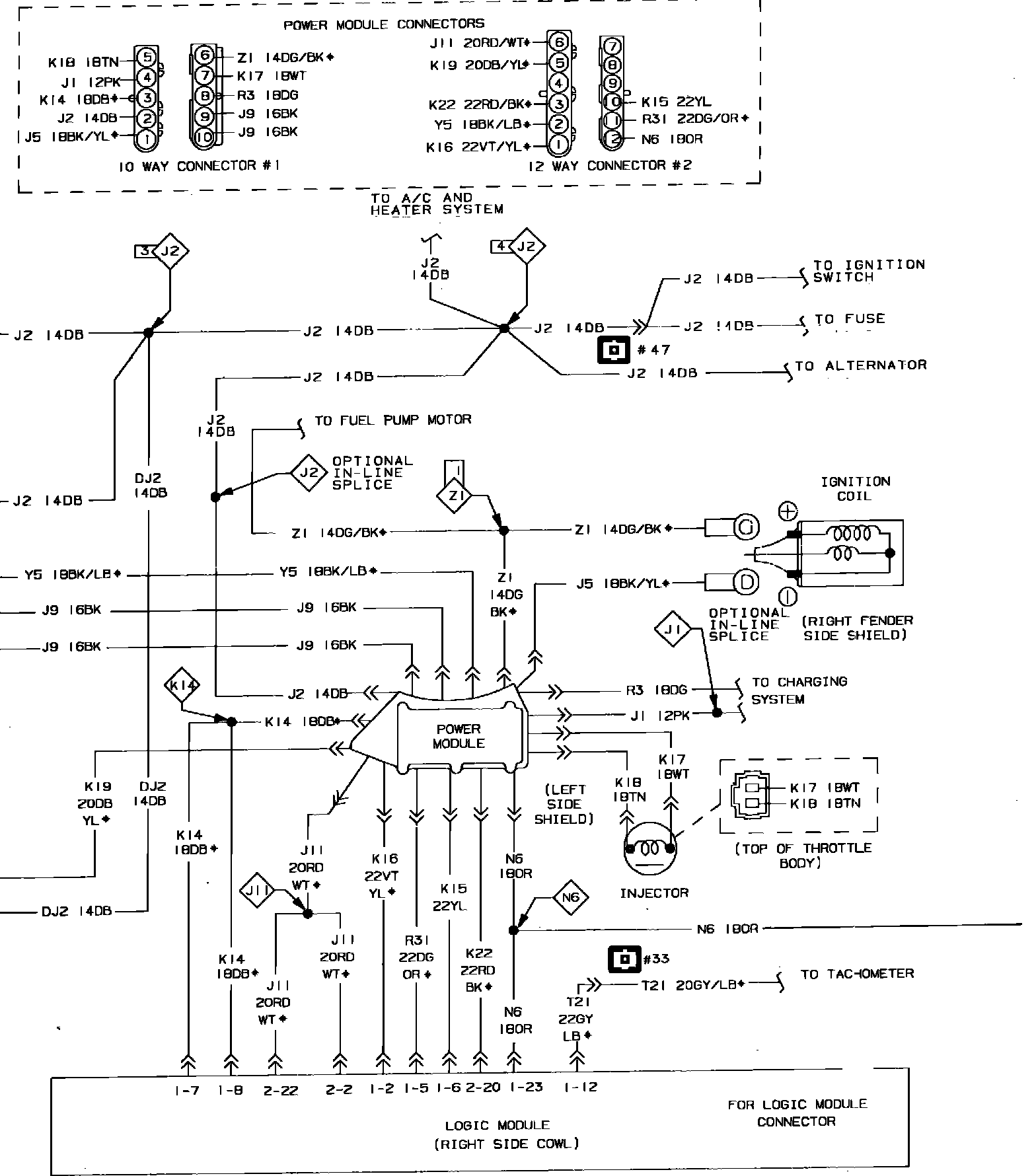 Ignition System Wiring Circuit (Part 3 of 4). Less Turbo: