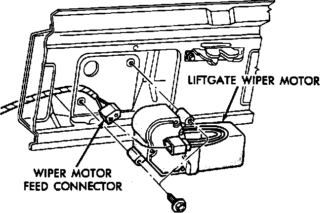 5. Disconnect feed connector. Remove screws holding motor assembly to liftgate and remove motor.