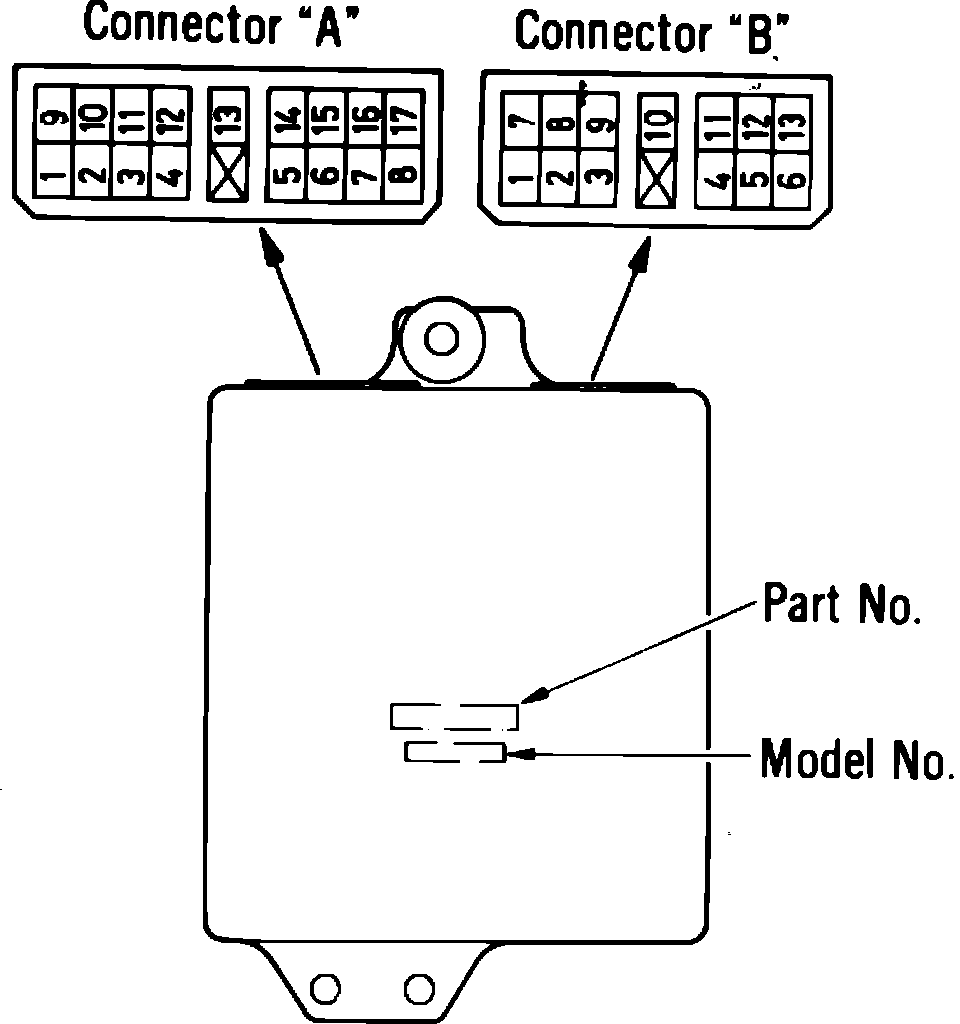 Fig. 17 ECU terminal identification. Exc. Conquest w/intercooler: