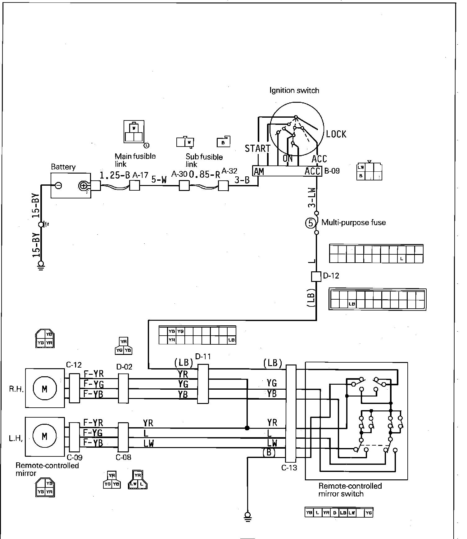 Power Remote Mirrors Wiring Circuit: