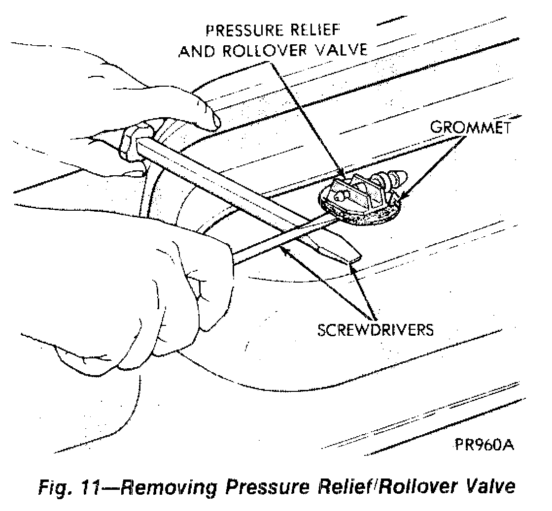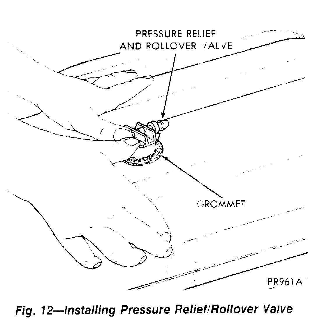 2. Wedge the blade of a screwdriver between the rubber grommet and the fuel tank where the support rib is located. Do not wedge between the valve and the grommet or damage to the valve may result upon removal.