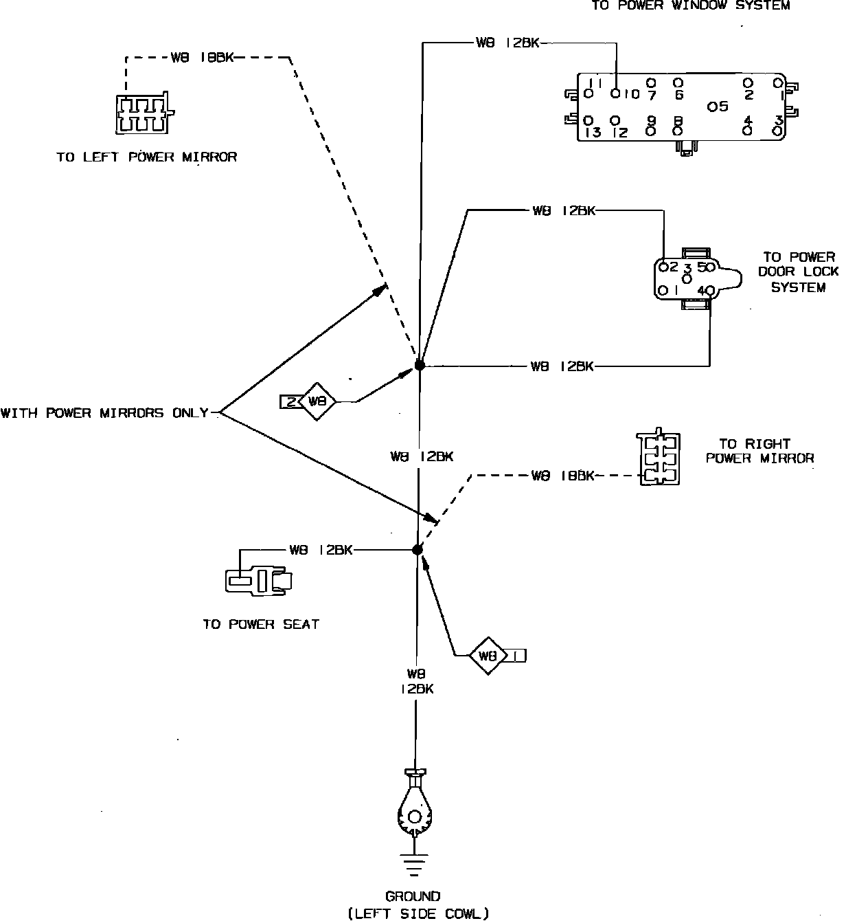 Fig. 46 Door Electrical Systems Ground Wiring Circuit. With Power Door Locks: