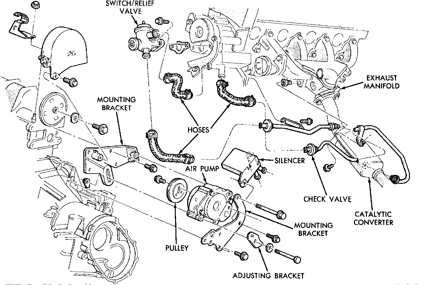 Air injection system. 4-135/2.2L engine (1986 - 87 similar):